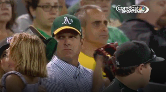 I’m not sure what San Francisco 49ers head coach Jim Harbaugh is so upset about, but he was at the Oakland Athletics-St. Louis Cardinals...