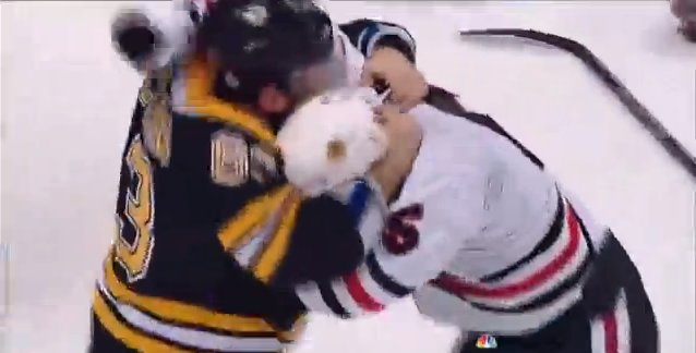 At the end of their fight during the waning moment of Game 3, Chicago Blackhawks forward Andrew Shaw eye gouged Boston Bruins forward Brad...
