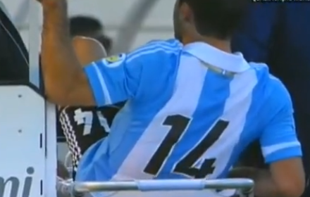 Here’s a first in soccer: Argentina’s Javier Mascherano was given a red card after he kicked the medic driving the cart during their game against...