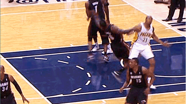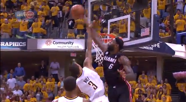 Who is LeBron trying to fool here? LBJ would end up fouling out as the Pacers evened the series at 2-2 with their 99-92...