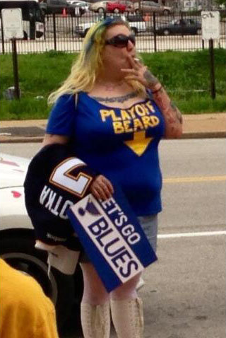 This is a brutal picture in every sense of the word. At least you can’t question this fan’s dedication but her attire is brutal....