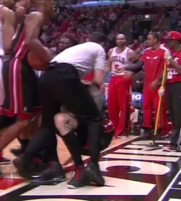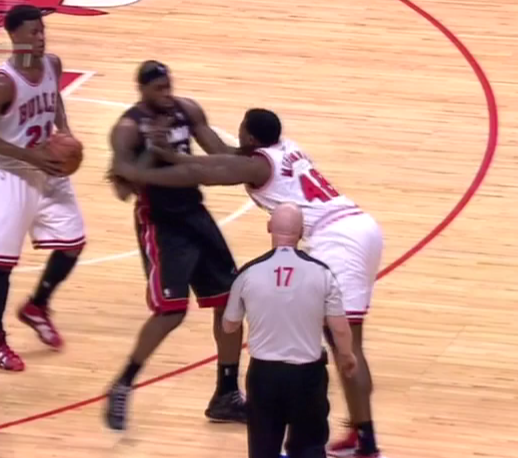 Joakim Noah came to defend Nate Robinson after a hard-foul. The Birdman got his feathers ruffled by the ref.