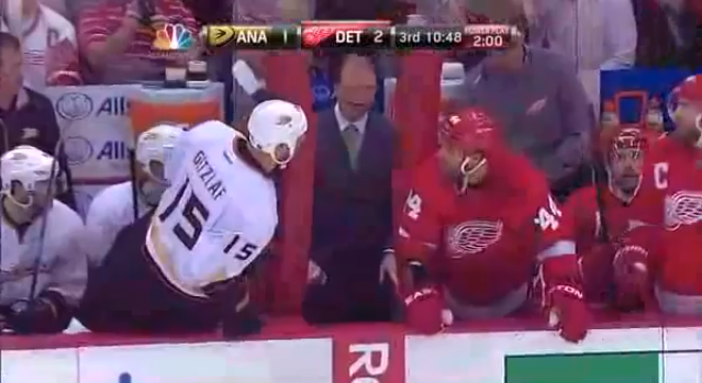 During the third period with the Detroit Red Wings up 2-1, Anaheim Ducks forward Ryan Getzlaf took exception to a penalty that was called...