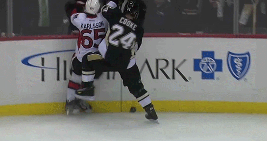 This has nothing to do with the fact that notorious cheap shot artist Matt Cooke is involved with the play. As I watch this...