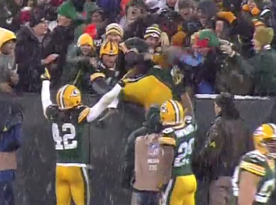 After executing a perfect play-action bootleg pass on the two yard line, Lee Smith went to celebrate by doing his version of the Lambeau...
