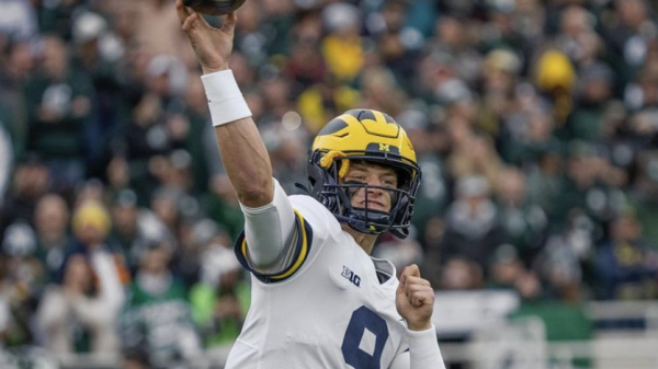 Jim Harbaugh shared updates on JJ McCarthy’s status and his shoulder injury: JJ McCarthy will start throwing the football on Monday, Jim Harbaugh tells...