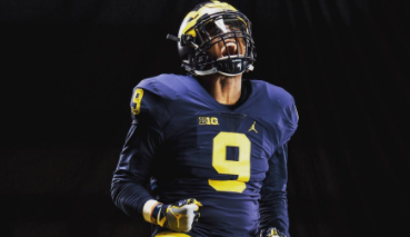 Brian Asamoah, a three-star linebacker out of Columbus, Ohio, sported some Michigan gloves during a recent St. Francis De Sales High School game: 2018...