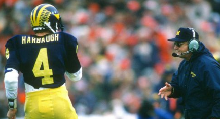 Michigan WR Drake Harris shared this photo of a huddle around Jim Harbaugh and captioned it ‘You and yours vs me and mine’: You...