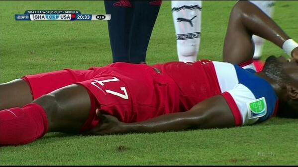 Tough blow for the United States during the 21st minute of their opening World Cup match against Ghana as striker Jozy Altidore went down...