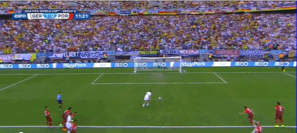 Germany’s Thomas Muller opened the scoring against Portugal on Monday with this beauty of a shot on a penalty kick. Here is the yellow...