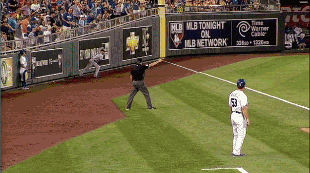 Cleveland Indians outfielder Ryan Raburn is singlehandedly responsible for giving up this inside-the-park home run to Kansas City’s Mike Moustakas. I know some Detroit Tigers...