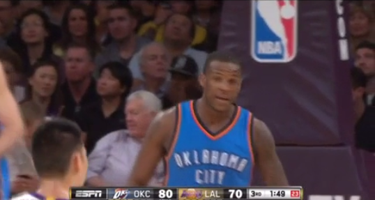 Russell Westbrook had just hit three free throws to put the Thunder up a point. One Lady was quite relieved with how the events...